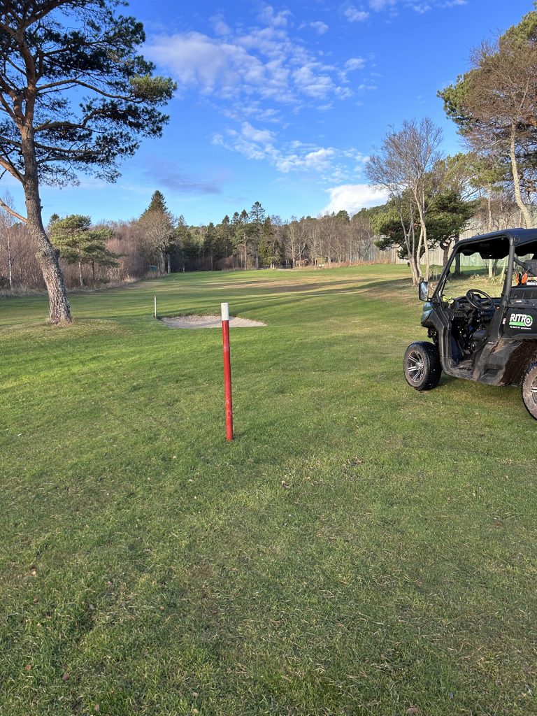 Vi håper på forståelse for at området for hull 5,6 og 7 denne sesongen fremstår noe uryddig men det jobbes for å få en bedre bane.